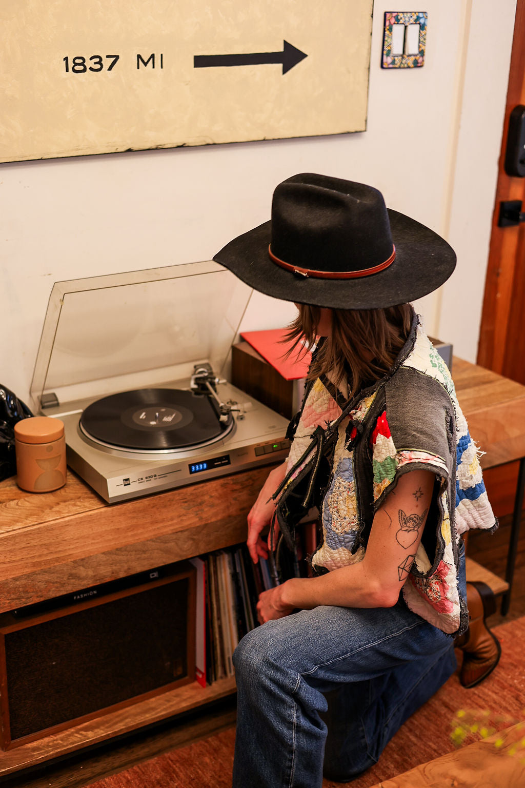 Each garment is handcrafted in Austin, Texas, by our talented team of sewists, all of whom are paid fair wages. We upcycle vintage quilts, giving them a second life as unique, wearable pieces of art. Every stitch is done with care, ensuring quality while honoring the original craftsmanship of the quilt.